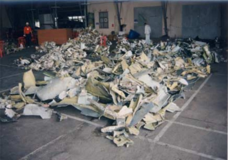 The aircraft broke into pieces before impact, with the debris spread over several kilometres, though most of the wreckage was concentrated in a single 60x80 meter area at the river bottom. There was not a complete body, body part or limb found, as the entire aircraft and passengers disintegrated upon impact. Only six positive identifications were later obtained from the few recovered human remains.