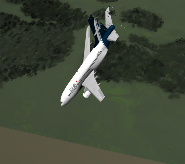 Flight 185 remained level at FL350 until it started a rapid and nearly vertical dive, as shown on Jakarta radar, around 16:12:18. The aircraft broke up in flight, crashing into the Musi River, near Palembang, Sumatra.